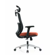Този офис стол се отличава със своя модерен дизайн и отлична функционалност. Седалката в оранжево добавя нотка цвят и стил, елегантно контрастираща със задната част в черно. Той е проектиран да осигури максимален комфорт при продължителна употреба, като фиксираната лумбална опора гарантира правилна и здравословна поза за гърба. Подлакътниците също са регулируеми, което позволява настройка според предпочитанията на потребителя, като по този начин се предотвратява напрежението в ръцете и раменете. Регулируемата тетивка допълва ергономичния дизайн, като осигурява допълнителна опора за врата и главата, което гарантира оптимален комфорт през целия работен ден.