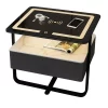 Компактният му дизайн е изработен от комбинация от закалено стъкло, PU кожа, MDF, дъбово дърво, желязо и издръжлива пластмаса, осигурявайки едновременно издръжливост и изискан вид.