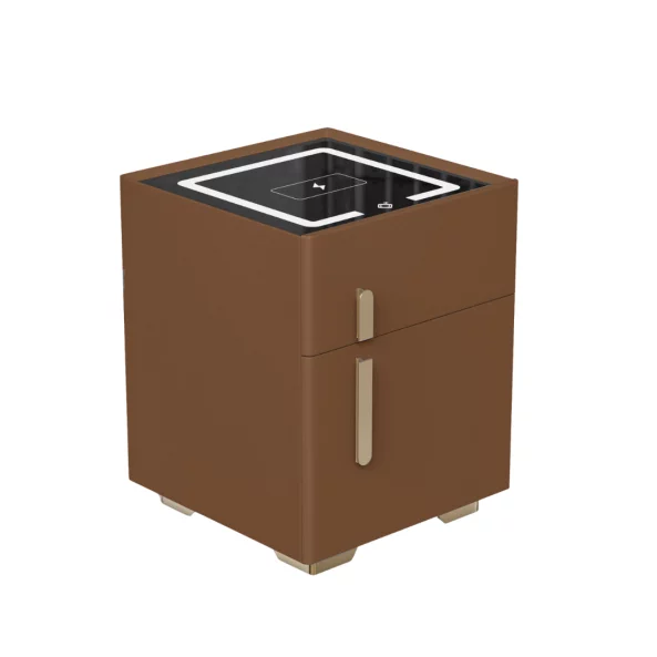 Добави стил и функционалност в спалнята си с това кафяво интелигентно нощно шкафче, което съчетава усъвършенствана технология с елегантен и практичен дизайн.