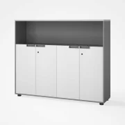 Тази офис комод е идеална за тези, които се нуждаят от организация и лесен достъп до документи и книги. Практичният й дизайн включва четири врати и горно пространство, което може да се използва като библиотека.