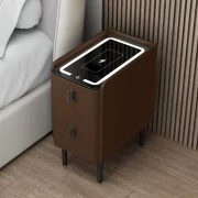 За стилна и функционална спалня избери това тънко смарт нощно шкафче в кафяв цвят, което предлага перфектна комбинация между технология и класически дизайн.