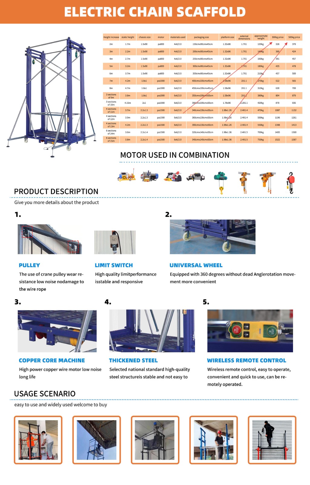 El andamio eléctrico representa una solución duradera y eficiente para trabajos de construcción y mantenimiento. Construido con acero galvanizado de alta calidad, este andamio ofrece una estructura sólida y resistente, capaz de soportar cargas significativas durante las tareas.