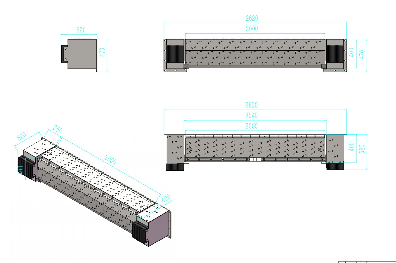 • au dimensiuni constructive standardizate: 2620 x 520 x 520 mm